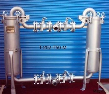T-202-B10-G30-H-M表示:側(cè)進(jìn)頂入式標(biāo)準(zhǔn)型雙袋并聯(lián)過(guò)濾器、7"長(zhǎng)濾袋、材質(zhì)SS316、10公斤壓力、國(guó)標(biāo)3”法蘭、半加熱